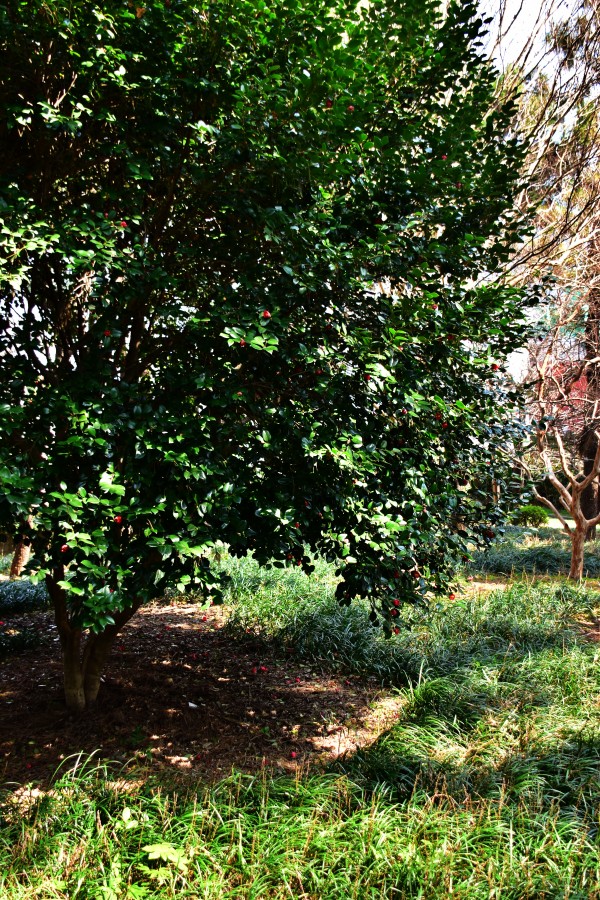 동백나무는 상록교목으로 한겨울에도 푸른잎을 자랑합니다. 상록교목은 종종 변치 않는 영원을 상징하기도 합니다.