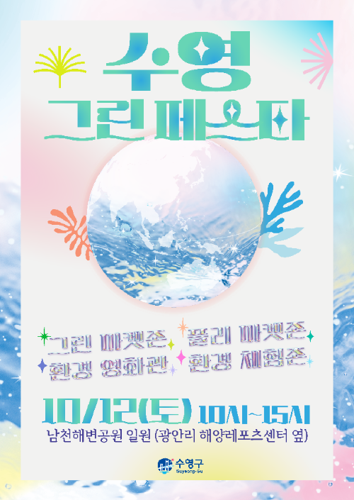 녹색 수영의 날을 '수영 그린 페스타'로 수정하여 10월 12일 광안리 해양레포츠선테 옆 주변에서 행사를 개최합니다.